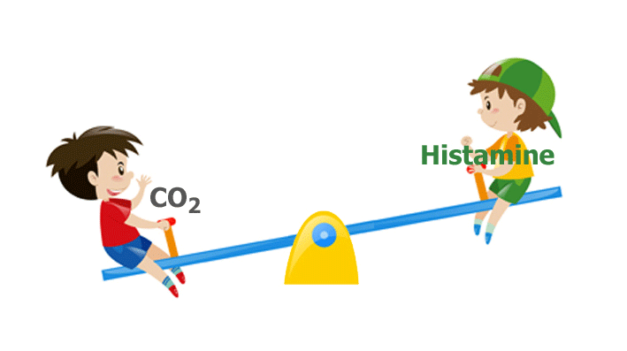 Wanneer je te veel ademt, daalt de hoeveelheid koolzuurgas in het bloed. Het gevolg is dat de hoeveelheid histamine in het bloed stijgt.